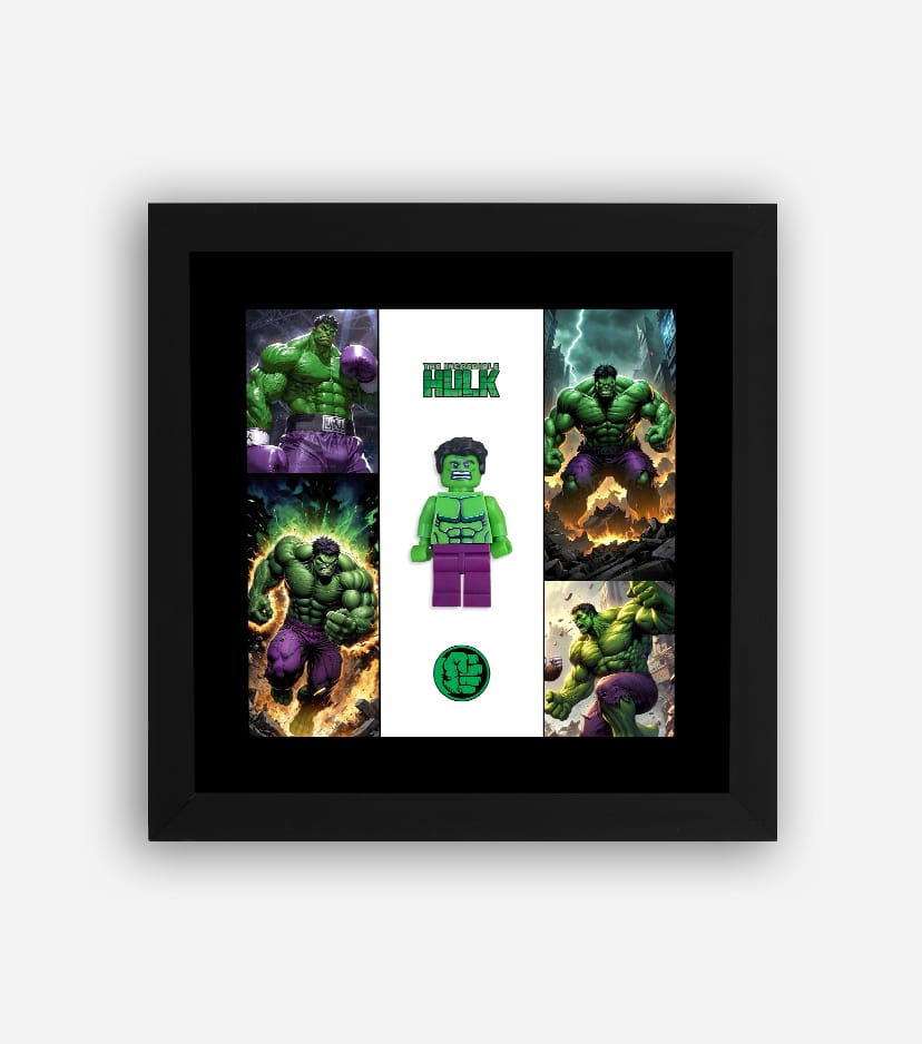 قاب لگو هالک، هدیه مارولی، دکوراسیون ابرقهرمانی، هدایای خاص لگو، قاب لگو شخصیت، هدیه برای طرفداران مارول، قاب دیواری هالک، لگوی هالک