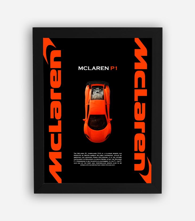 مکلارن P1، بهعنوان یکی از برجستهترین هایپرکارهای تاریخ، نمادی از پیشرفت در دنیای خودروهای هیبریدی است. این خودرو با تلفیق تکنولوژی پیشرفته و طراحی ایرودینامیک، نمایشی از برتری مهندسی و زیبایی طراحی را ارائه میدهد. قاب ماکت سهبعدی این خودرو بهگونهای طراحی شده که جزئیات شگفتانگیز این شاهکار را با دقت بازتاب دهد. از خطوط جسورانه بدنه گرفته تا ویژگیهای خاص طراحی، همه چیز با ظرافتی بینظیر در این قاب هنری به تصویر کشیده شده است.